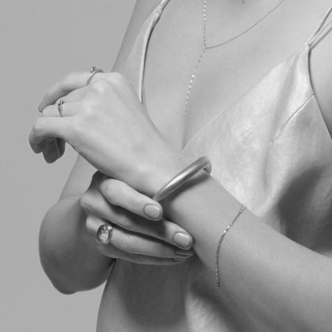 美しい曲線と直線を織り交ぜ、シンプルさを追求した重量感のあるマニッシュなデザイン。身に着けるファッションを選ばず、ラグジュアリーな空気感を醸成するアイテム。