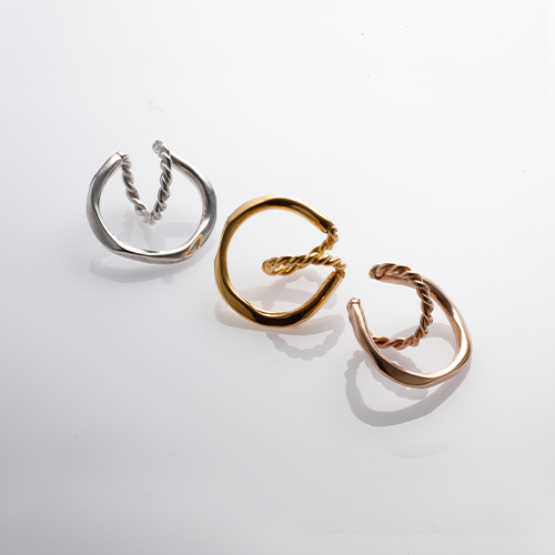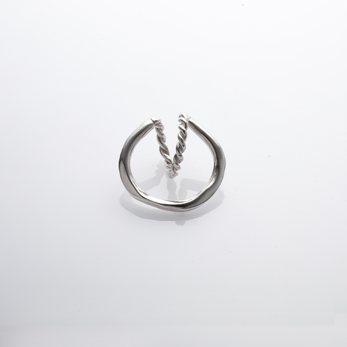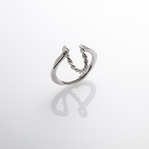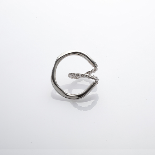 捻りを加えた円と、それを囲むように繋がるフォルムが印象的。