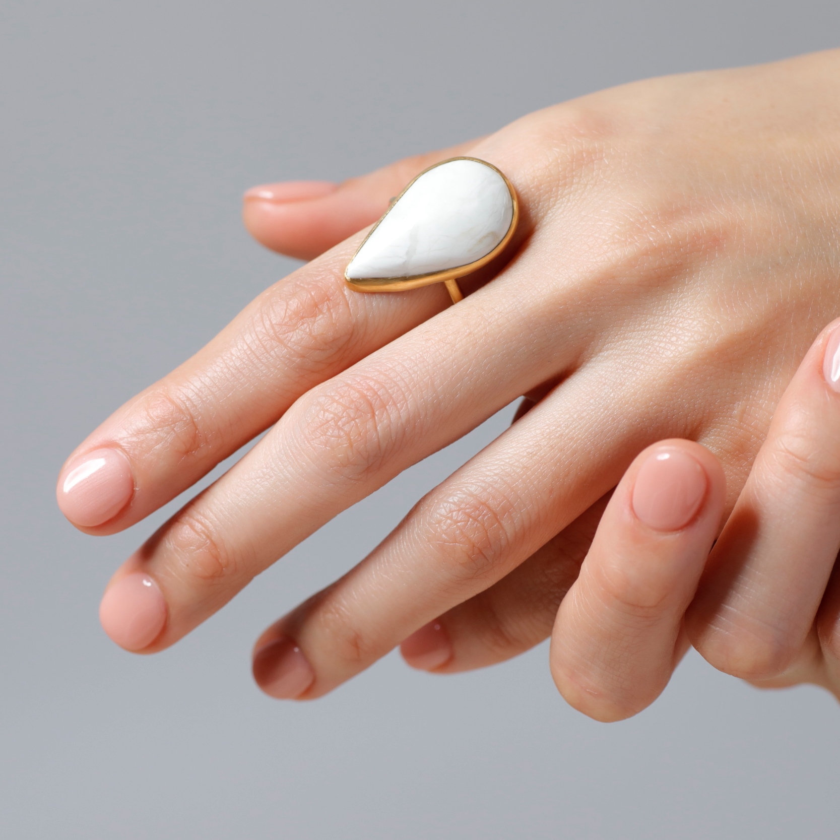 ハウライト天然石を使った、一点モノのリングです。